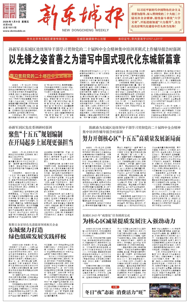 孙新军要求,一是胸怀大局,在“十五五”规划编制上展现更高站位。紧扣“国之大者”和上级部署要求,准确识别未来五年发展新趋势、新要求,前瞻性谋划各项工作任务,紧密结合区委“十五五”规划建议,制定符合东城实际、顺应人民期待、引领未来发展的好规划。