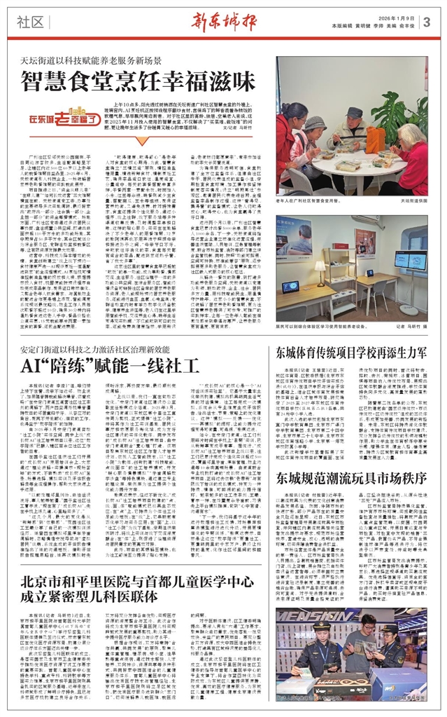 - 智慧食堂烹饪幸福滋味 上午10点多,阳光透过树梢洒在天坛街道广利社区智慧食堂的外墙上,玻璃窗内,AI烹饪机正按预设程序翻炒食材,宫保鸡丁的鲜香混着杂粮饭的软糯气息,早早飘向周边街巷。对于社区里的高龄、独居、空巢老人来说